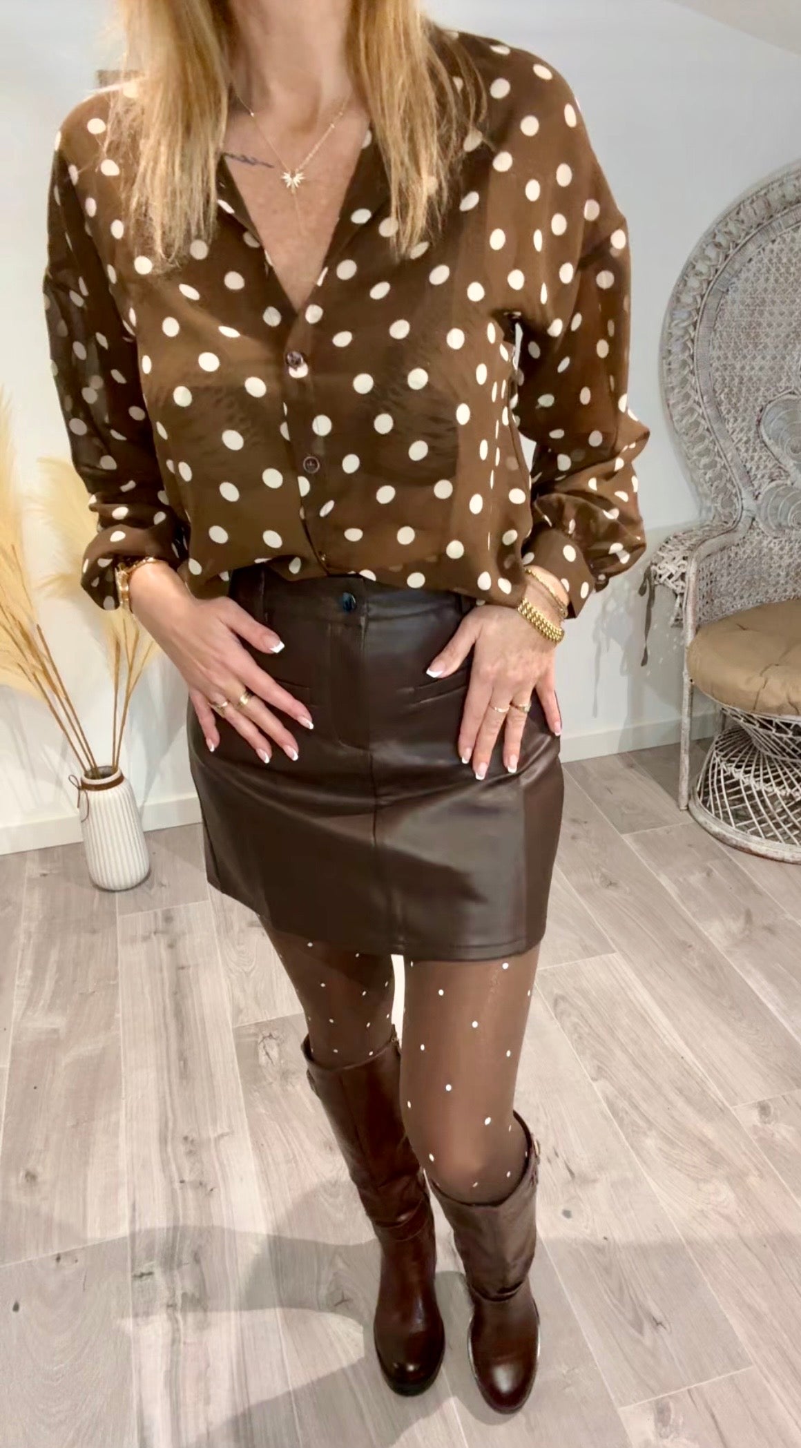 Collant fantaisie 50 deniers marron avec flocons blancs