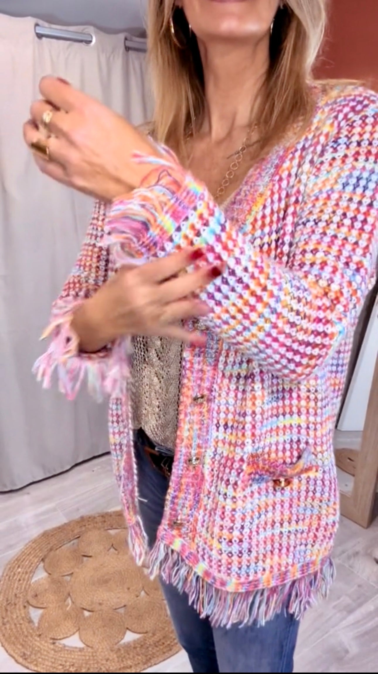 De la couleur pour cet hiver avec ce magnifique cardigan long à col en V et boutons.