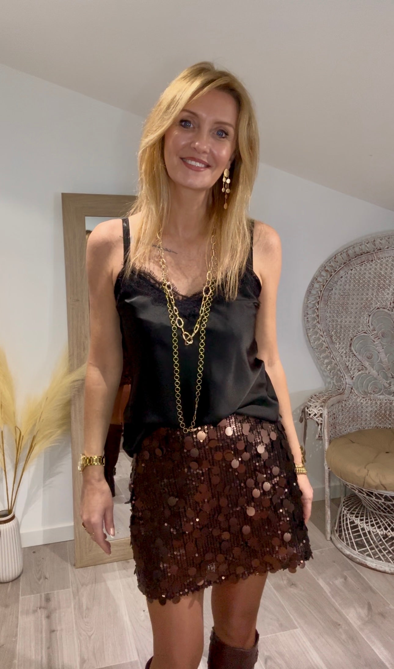 Pour briller tout en élégance , jupe à gros et petits sequins , doublure et fermeture éclair que le côté.