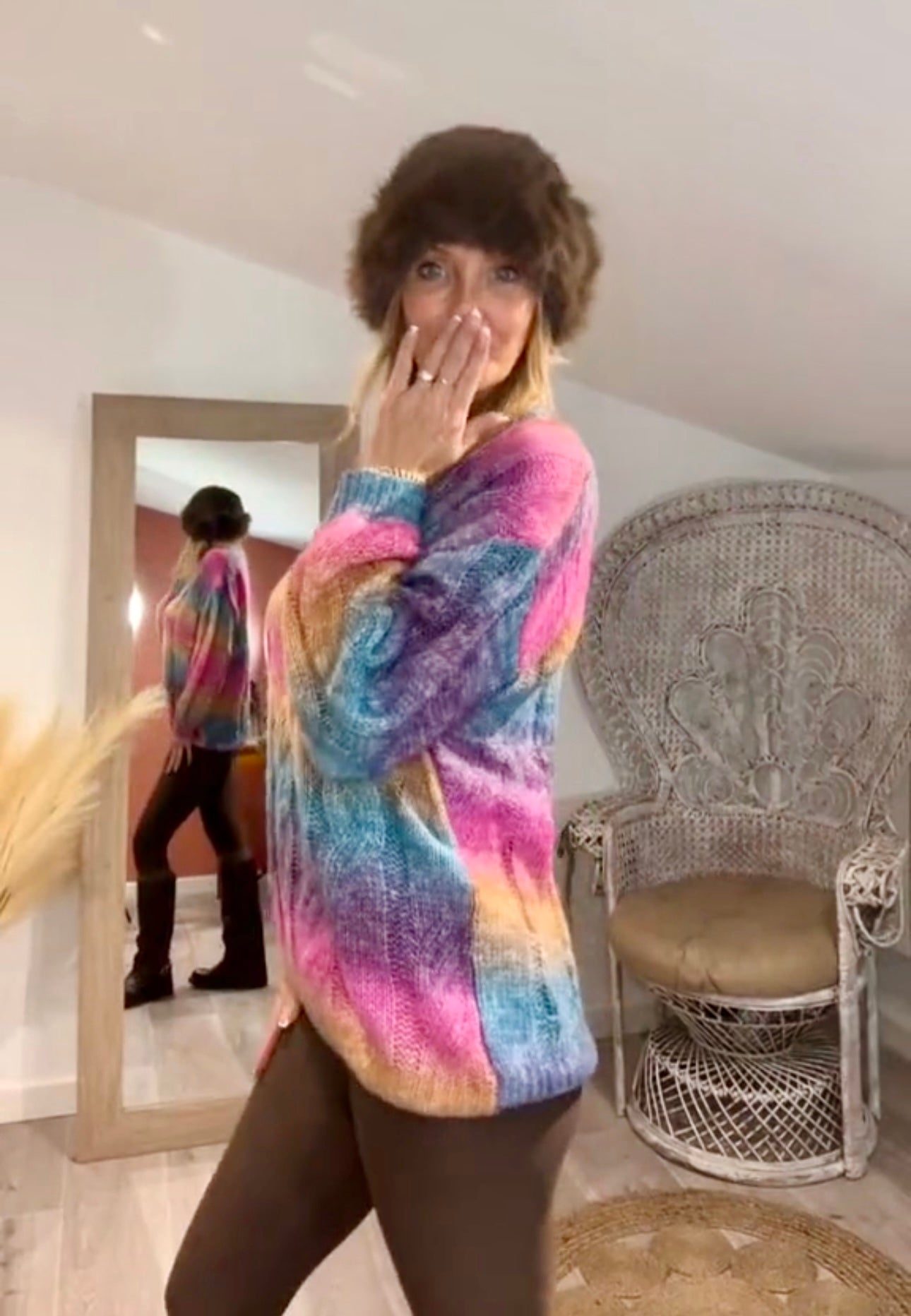 Pull en maille torsadée aux dégradés multicolores. Ultra doux et confortable, idéal pour illuminer nos hivers.