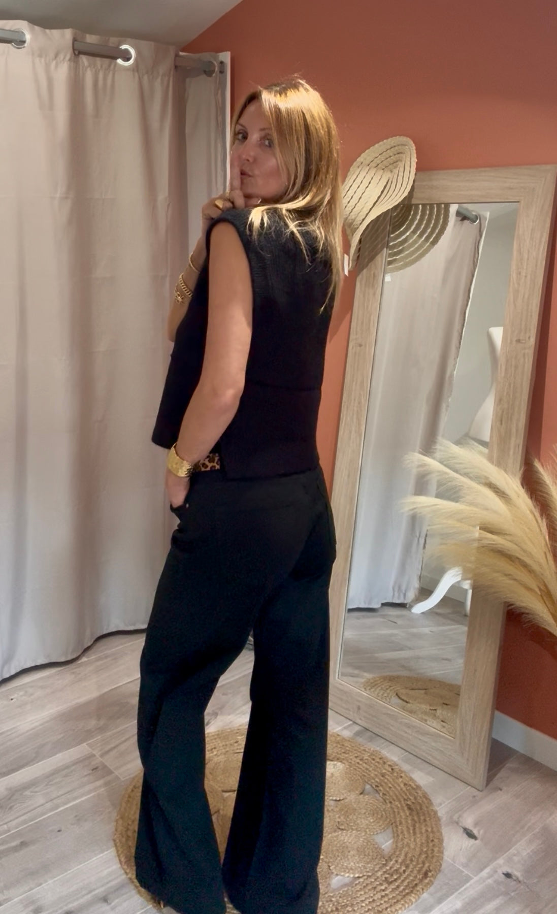Le pull Marc noir sans manche, à superposer sur une chemise, ou à porter seul avec son Joli trio de boutons de chaques côtés.