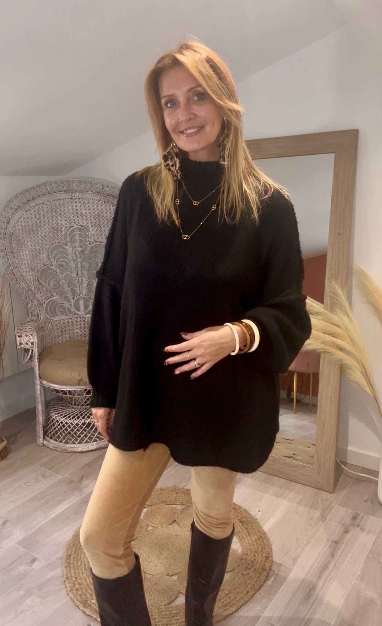 Pull noir large à col montant et grosse couture , incroyablement doux, chaud et confortable, largeur : 80 cm, longueur : 80 cm