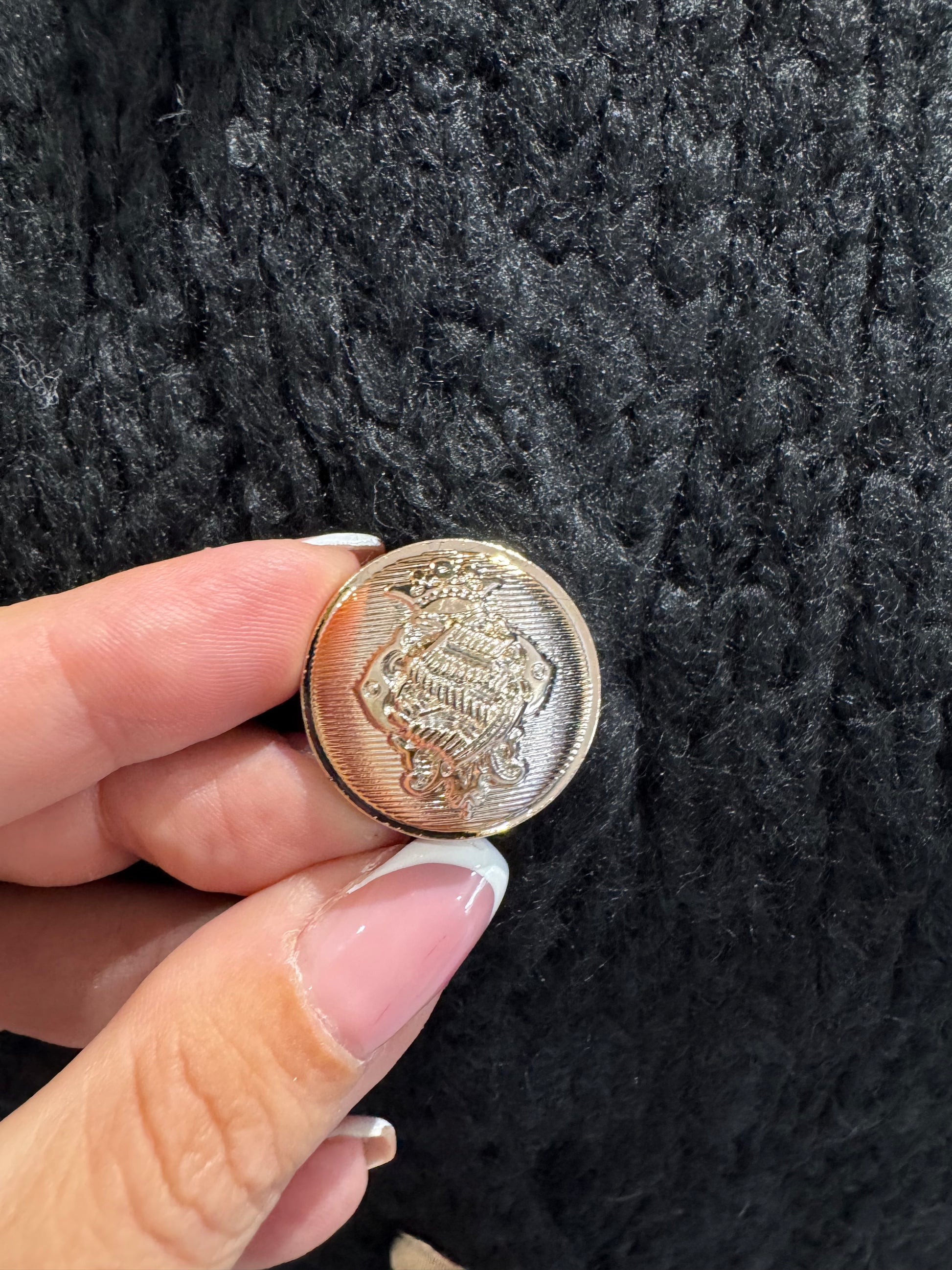 Gilet noir en laine et mohair très doux , qui ne gratte absolument pas , col montant délicatement volanté, manches longues bouffantes resserrées aux poignets.