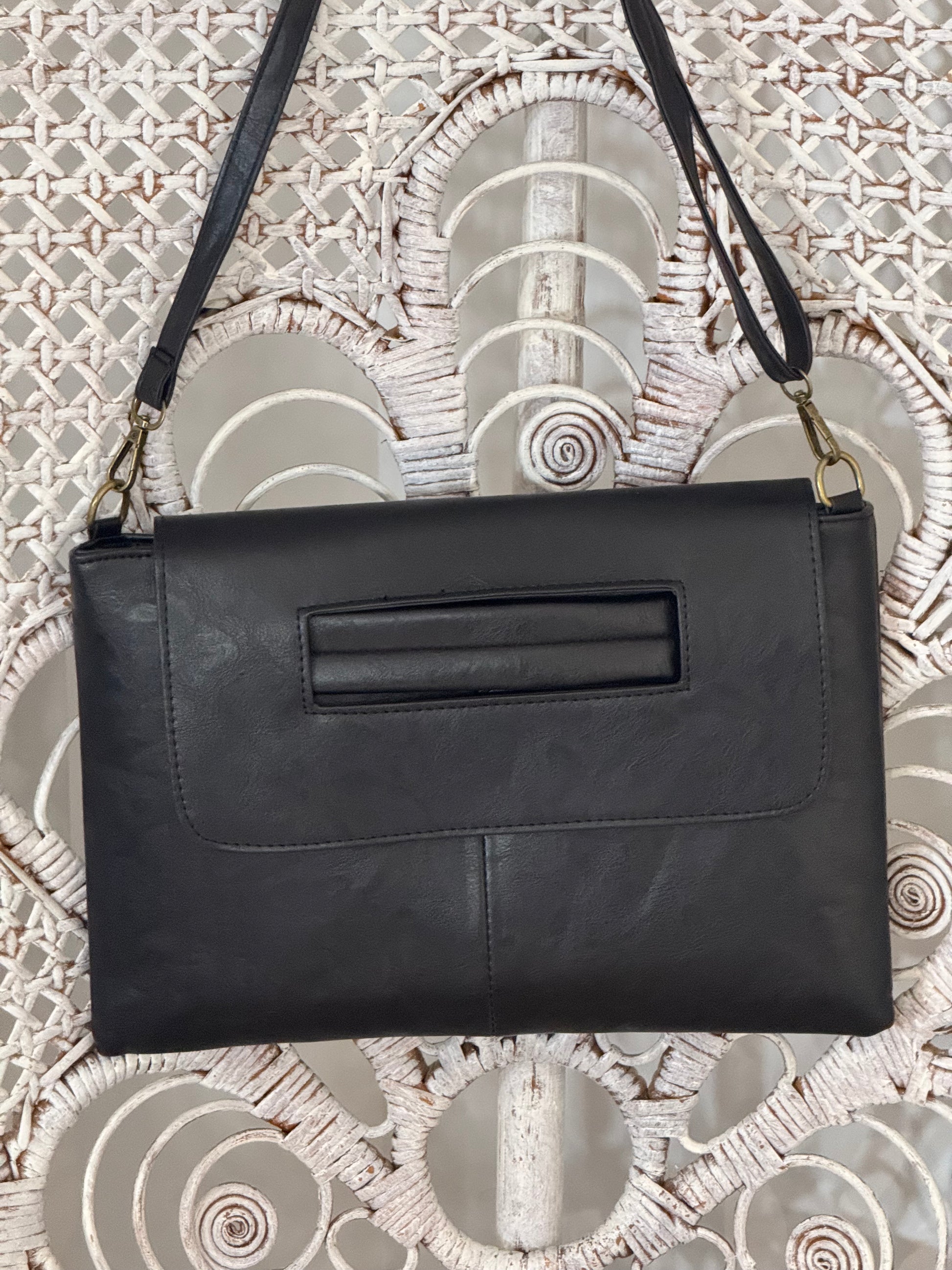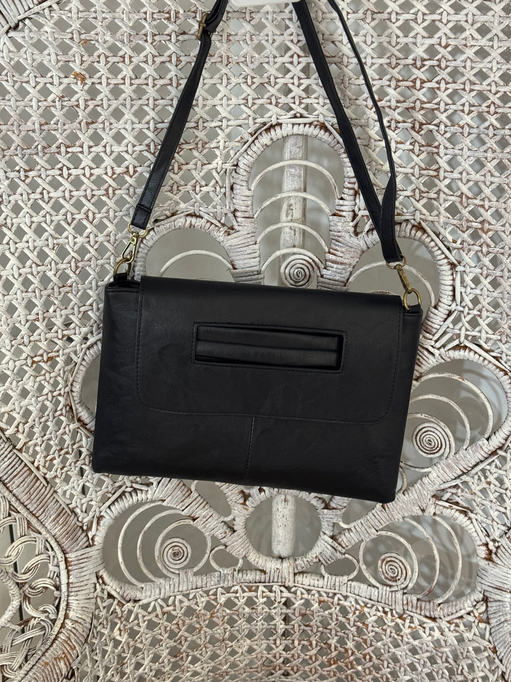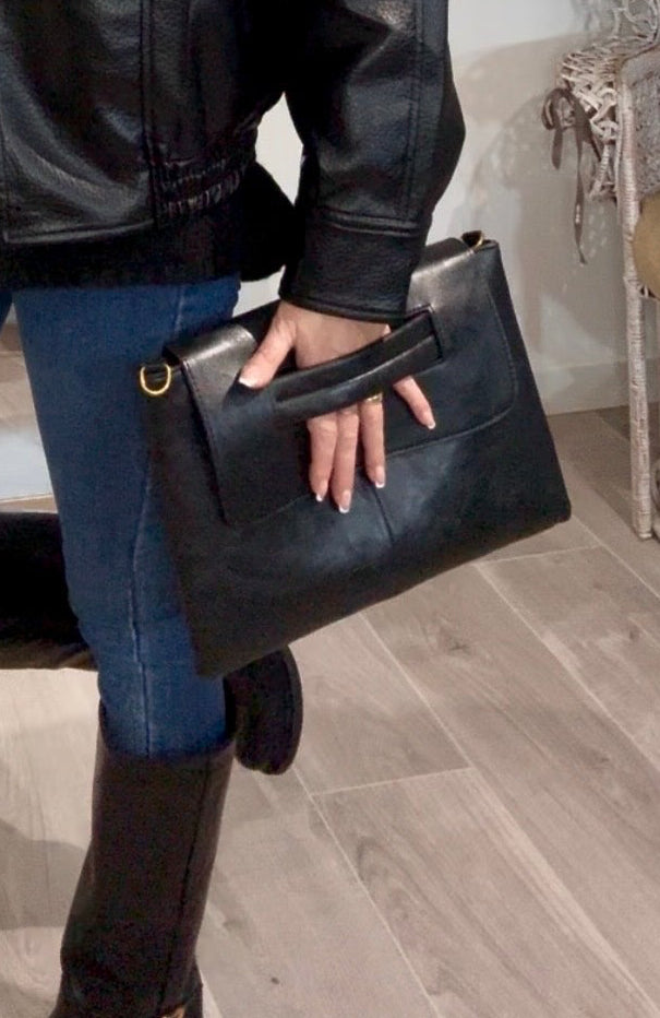 Sac à main pochette avec bandoulières amovible, fermeture par pressions.